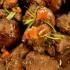 Lammegryde med hele svineriet af forårets friske krydderurter. Dertil en meget pikant tomatsalat.